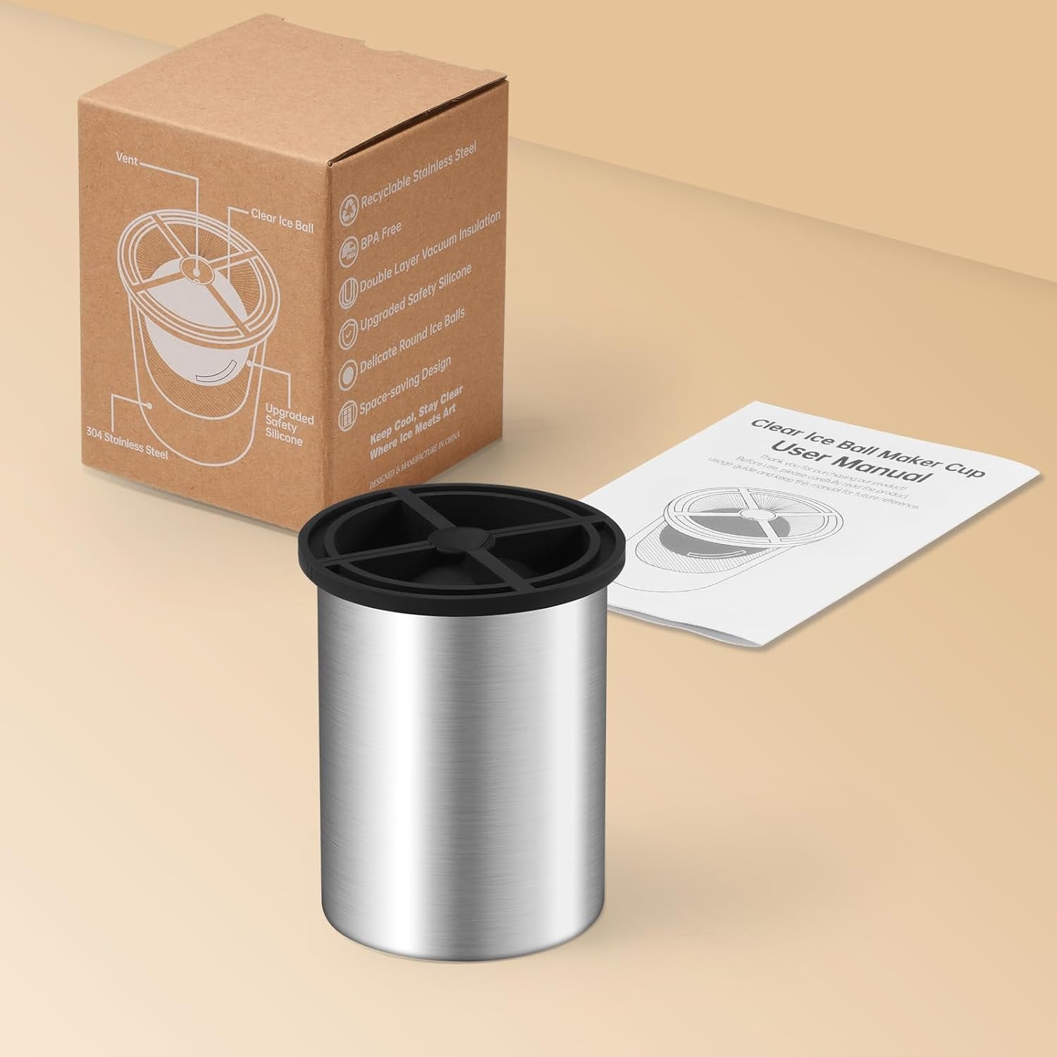 🧊Package Contents — The set includes 1x 2.5-inch stainless steel clear ice ball mold, 1x user manual